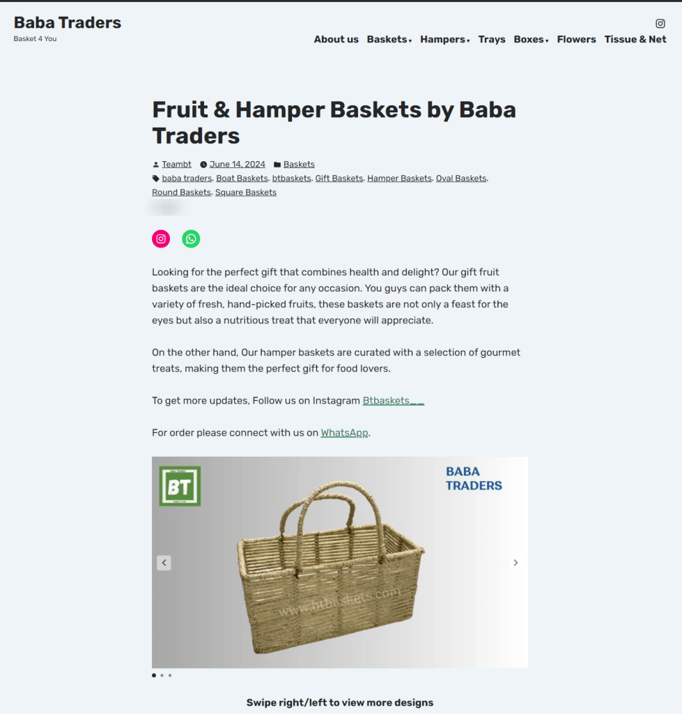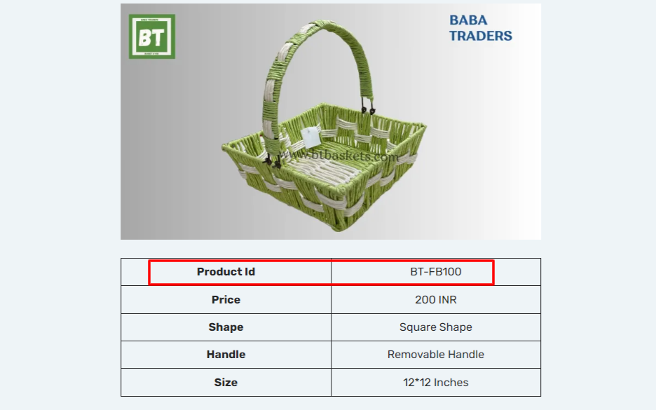 The Official website of Baba Traders Baskets is http://www.btbaskets.com.